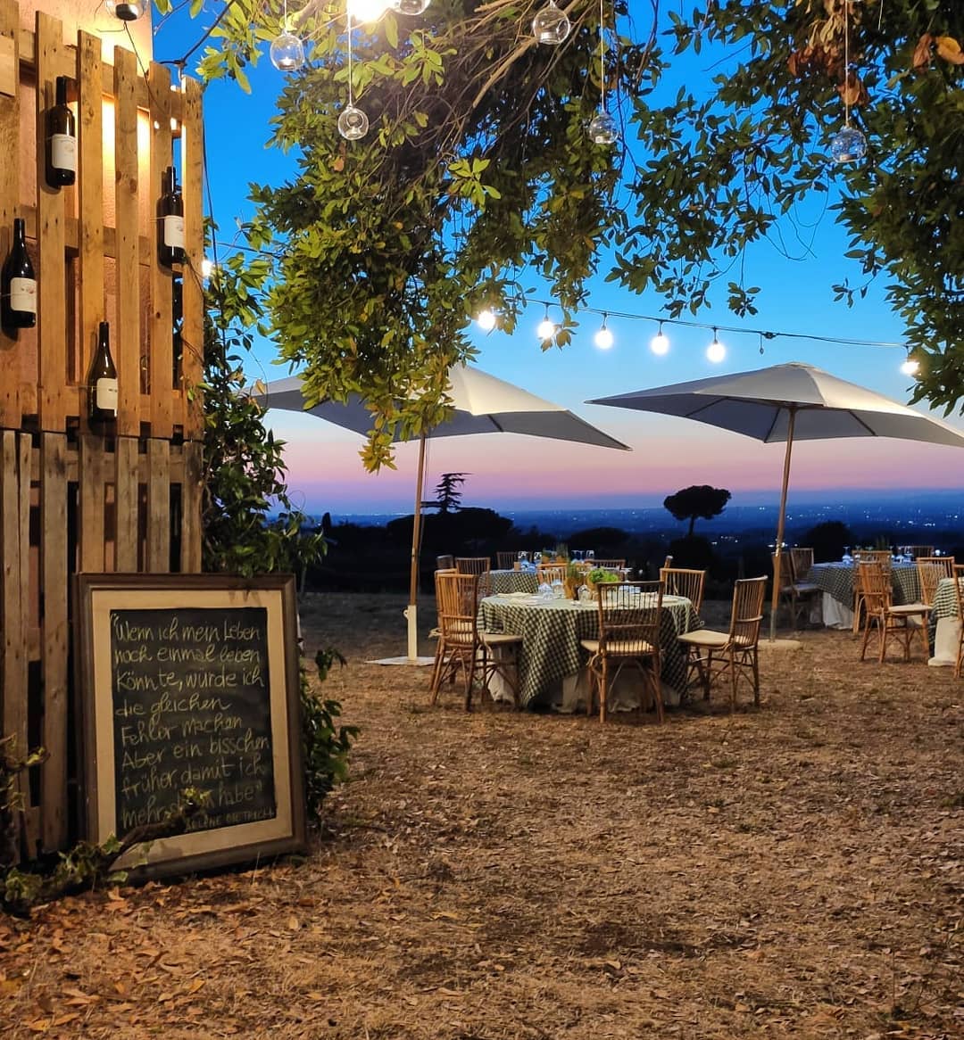 Un evento unico che accompagna gli ospiti dal tramonto fino a tarda sera, sotto un cielo stellato e circondati dalla magia dei vigneti dei Castelli Romani. Non una semplice cena, ma un viaggio sensoriale immerso nella natura, dove i sapori del territorio si incontrano con l’atmosfera suggestiva della vigna.