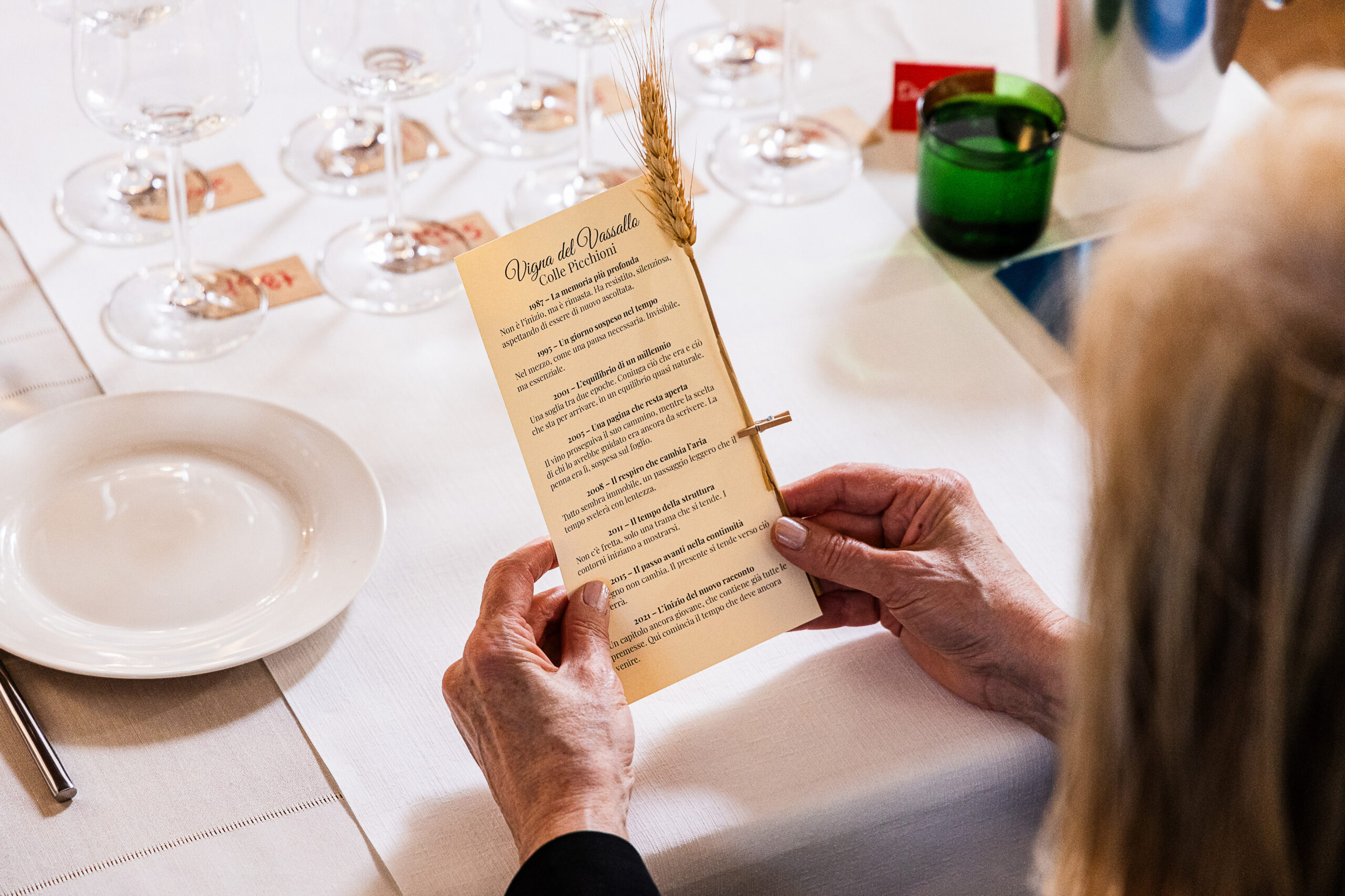 Le cene in vigna sono pensate per chi cerca emozione e qualità. Ogni dettaglio è curato con attenzione: dai calici serviti tra i filari all’allestimento elegante ma essenziale, che valorizza lo spazio naturale trasformandolo in un luogo da vivere e da ricordare.